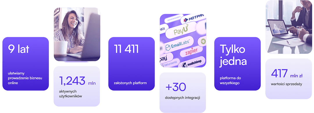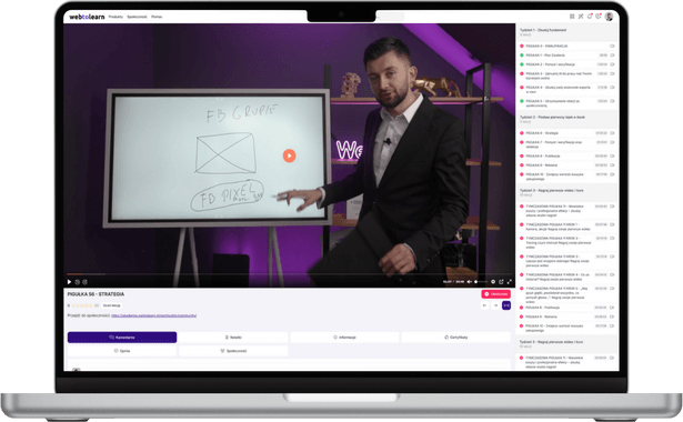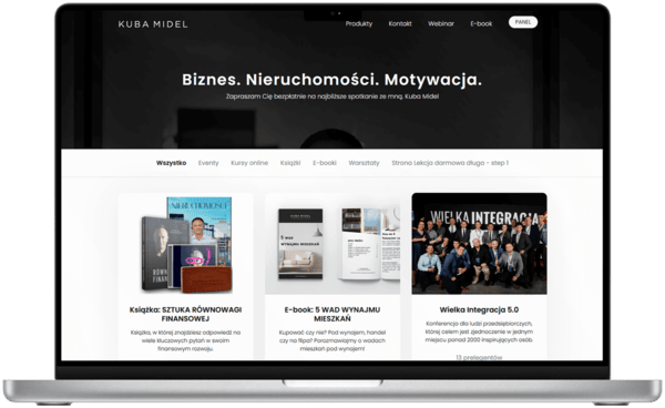 Twórz, udostępniaj i sprzedawaj kursy online, webinary, e-booki oraz inne produkty cyfrowe w obrębie jednej intuicyjnej platformy.Korzystaj z szerokiej gamy funkcji i automatyzacji, zarządzaj dostępem użytkowników do treści, wysyłaj maile, wystawiaj faktury i certyfikaty uczestnictwa, śledź statystyki - wszystko w jednym miejscu.