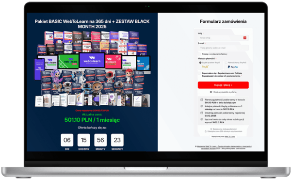 Promocja dotyczy nowych i obecnych klientów Web To Learn. Jeśli posiadasz już aktywny abonament, przedłużymy ważność Twojego konta.