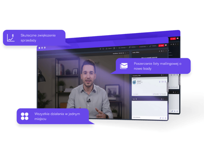 Z narzędziem WTL Webinar możesz prowadzić spotkania i lekcje online, a także webinary, które są jednym z najskuteczniejszych sposobów na pozyskiwanie nowych klientów i podniesienie wyników sprzedaży. To też szybka droga, by zbudować autorytet i wiarygodność Twojej marki.